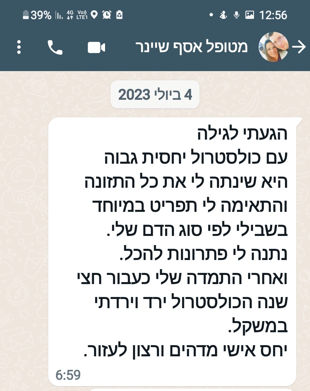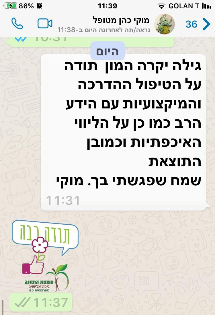בעלת ניסיון טיפולי רב בנושא בריאות מערכת עיכול, ירידה במשקל, ושיפור הפוריות.