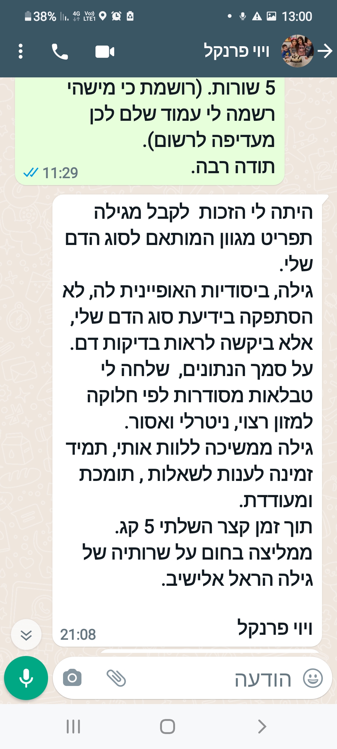 מומחית בשיטת תזונה מותאמת אישית, לפי סוג דם ורוק.